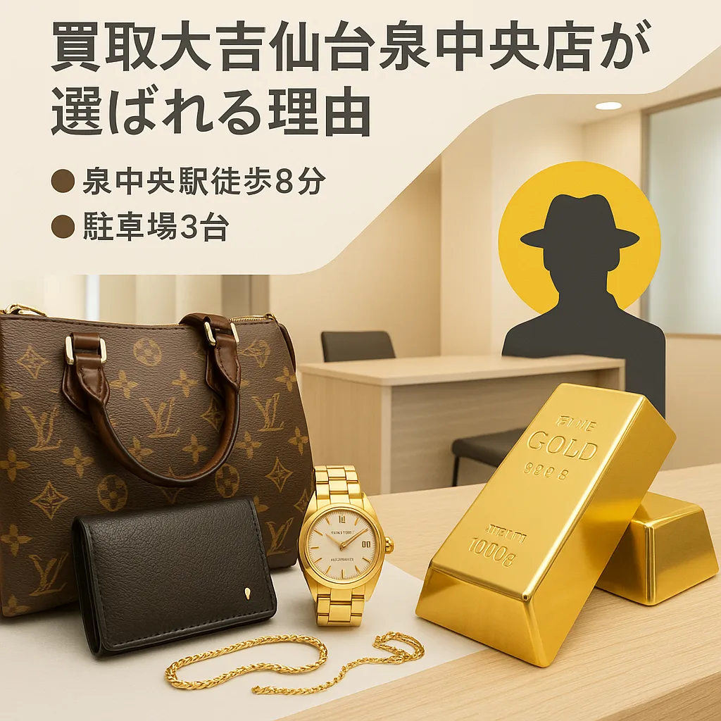2025年現在、リユース利用はさらに身近になりましたね。特に貴金属やブランド品、金の持ち込みは「査定の質」と「使いやすさ」でお店を選ぶ方が増えています。この記事では、実際の運用情報に基づき、買取大吉仙台泉中央店のサービス内容や強みを具体的に整理し、なぜ地域で選ばれているのかを分かりやすくお伝えします。