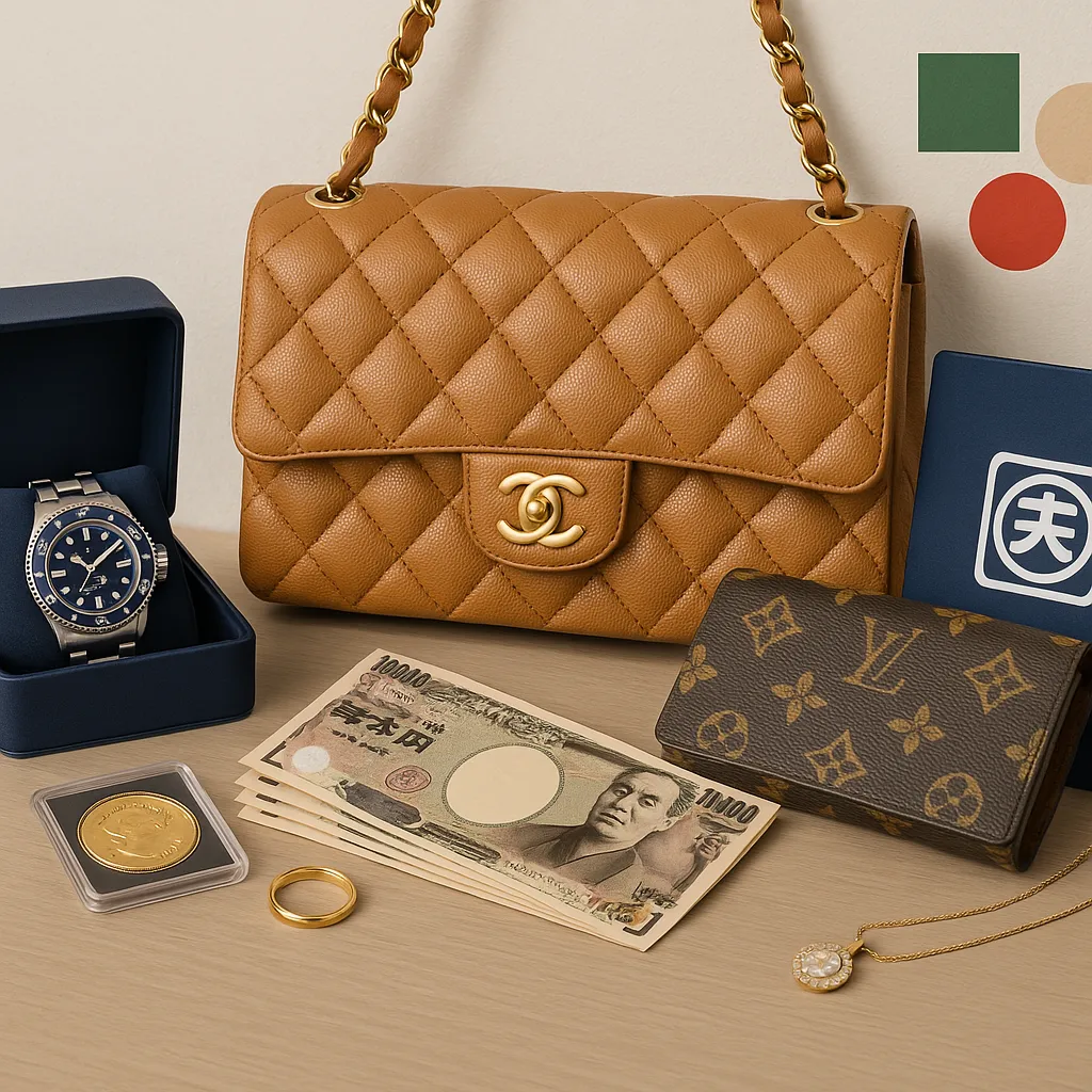 取り扱いは貴金属、ブランド品、時計、美術品、楽器、切手、商品券など多岐にわたります。ブランド品は付属品やコンディション、シリアルの有無で評価が変わりやすいので、箱やギャランティがあれば一緒に持参すると良いですよ。片方だけのピアスや古いデザインでも相談できるのがうれしいところです。