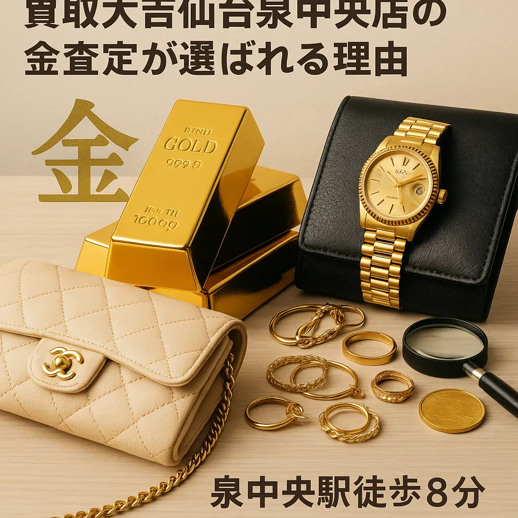 2025年現在、相場動向に敏感な金や貴金属の売却は、スピードと安心感が欠かせません。仙台市泉区でその両方を満たす選択肢として、買取大吉仙台泉中央店が注目されています。金はもちろん、ブランドや時計まで幅広く相談でき、初めてでも迷いにくい仕組みが整っているのが特徴ですね。この記事では、サービス内容と強み、選ばれる理由を具体的にお伝えします。