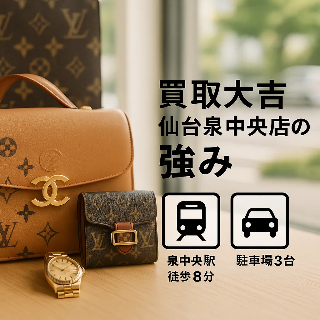 「丁寧さ」「スピード」「通いやすさ」がそろう店舗は満足度が安定します。ブランド品の売却でも、無料査定と迅速な現金化、明確な店舗情報、そしてオンライン相談のしやすさが判断基準になります。これらを満たす例として買取大吉仙台泉中央店は、泉中央駅からのアクセスや駐車場、出張・LINE対応まで揃っており、初めてでも迷わず進めやすい体験を提供しています。迷っている一品があるなら、まずはブランド品の状態確認とLINE相談から始めてみると良いですね。