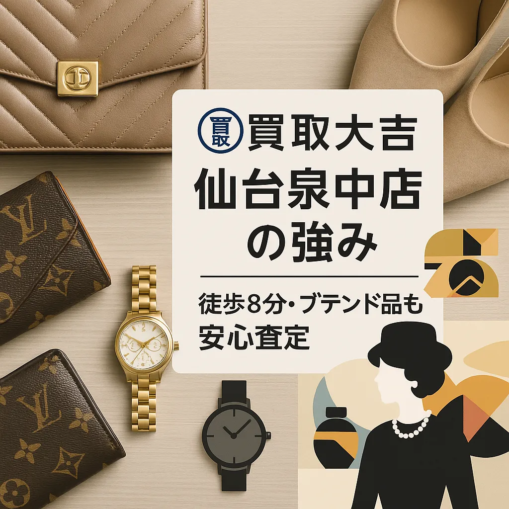 2025年現在、リユースを選ぶ決め手は「安心して預けられるか」と「使いやすさ」ですね。とくにブランド品は真贋や相場の見極めが重要です。本記事では、買取大吉仙台泉中央店のサービス内容と強みを具体的に取り上げ、なぜ地域で選ばれているのかを整理します。査定は無料で、初めての方でも流れが分かれば不安はぐっと減りますよ。
